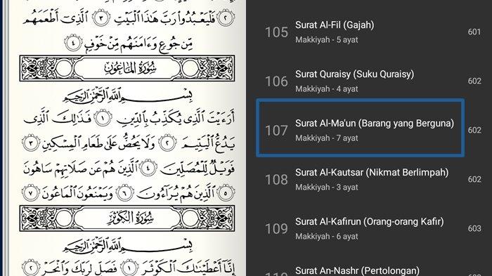 “Tahukah engkau (orang) yang mendustakan agama? Maka itulah orang yang menghardik anak yatim dan tidak mendorong memberi makan orang miskin. Maka celakalah orang yang salat. (yaitu) orang-orang yang lalai terhadap salatnya yang berbuat ria dan enggan (memberikan) bantuan.”